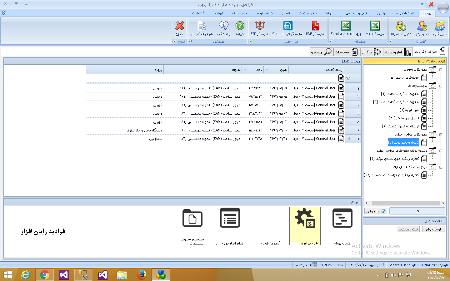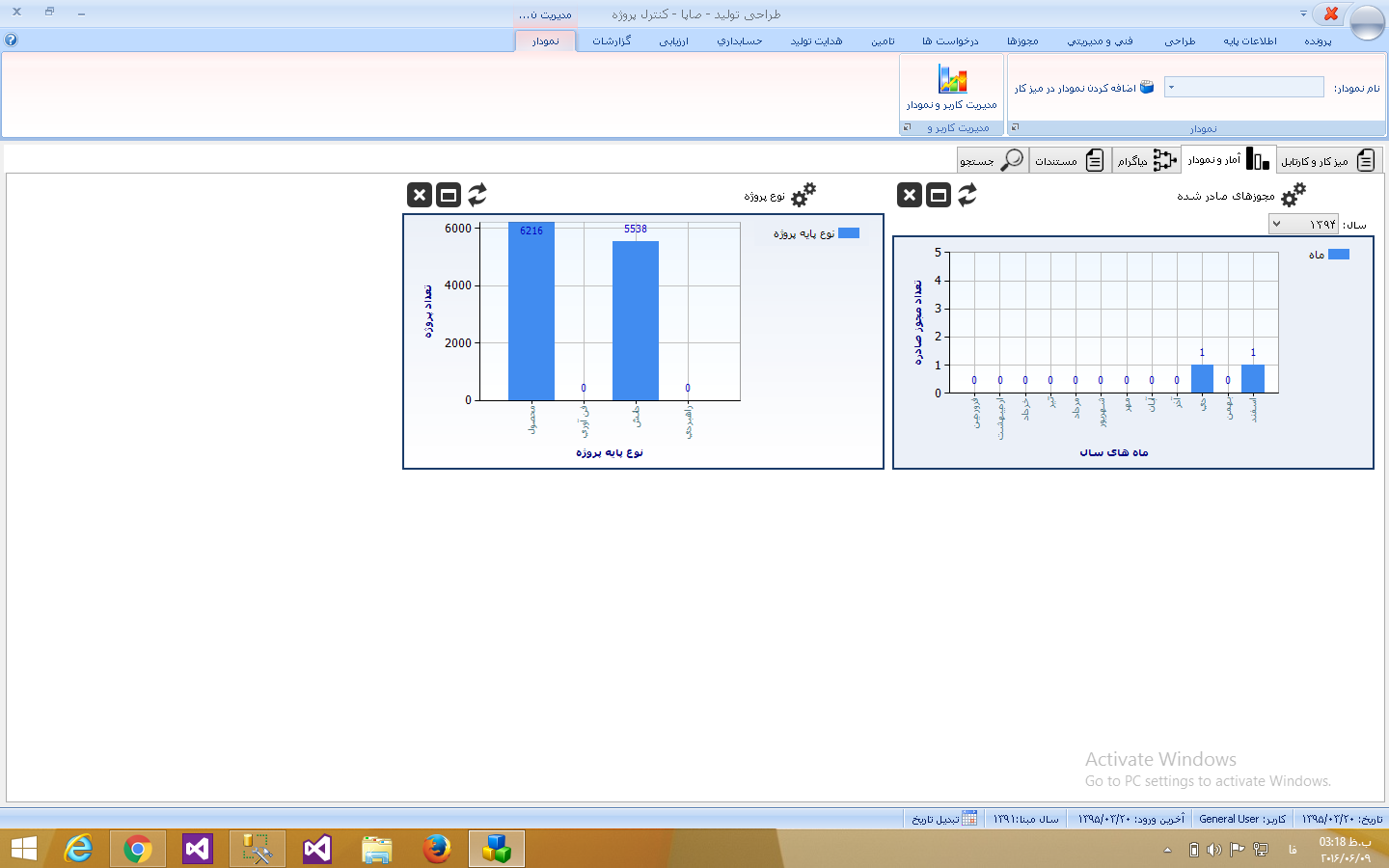 o صدور مجوز: صدرو مجوزهای خرید و تولید بر اساس نوع قطعات پروژه ، نوع درخواست(تحقیقاتی، تولیدی)