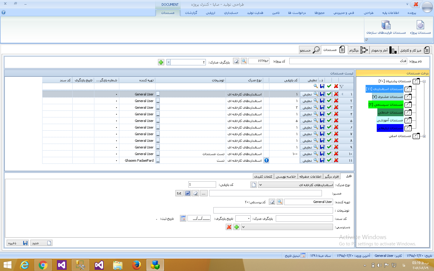 o مستندات پروژه : ثبت مستندات پروژه، تهیه کننده، دسترسیها، بازنگری، اسکن مستقیم مدارک، نمایش مستندات در نمایشگر نرم افزار