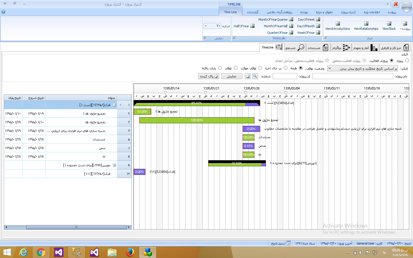 مشاهده پیشرفت واقعی، سهم و برنامه ای پروژه