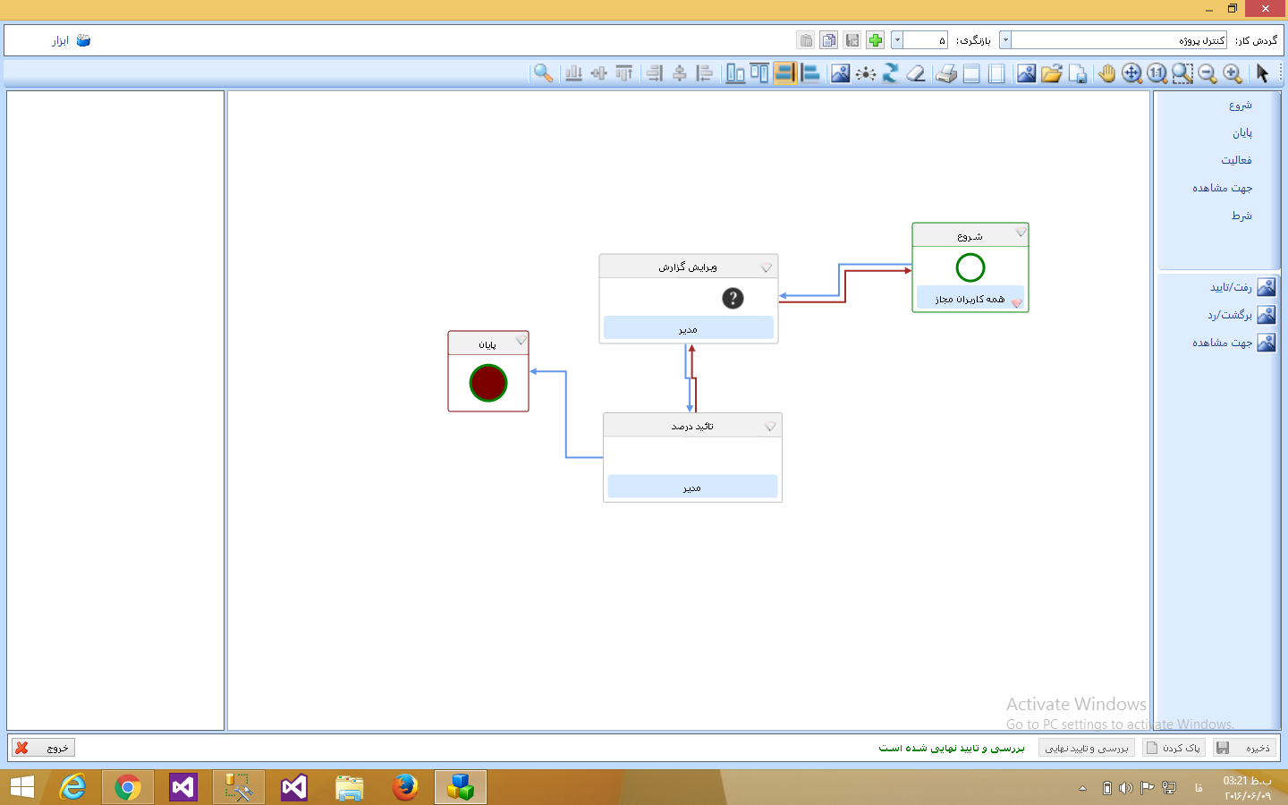 o گردش کار: امکان تعریف گردش کا بر اساس نوع مجوز، منشور و نوع پروژه با قابلیت ایجاد بازنگری