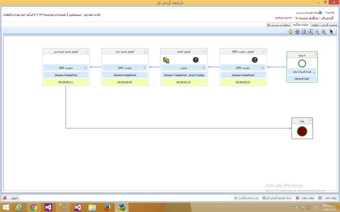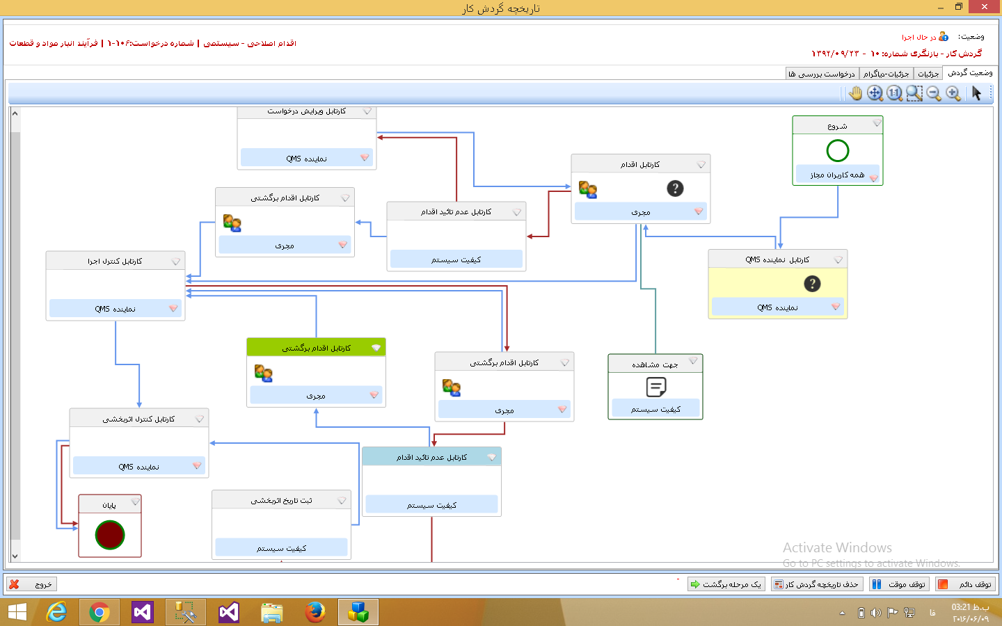 o تاریخچه گردش کار: نمایش تاریخچه گردش کار مجوزها و نمایش آخرین وضعیت بصورت دیاگرامی و جدولی